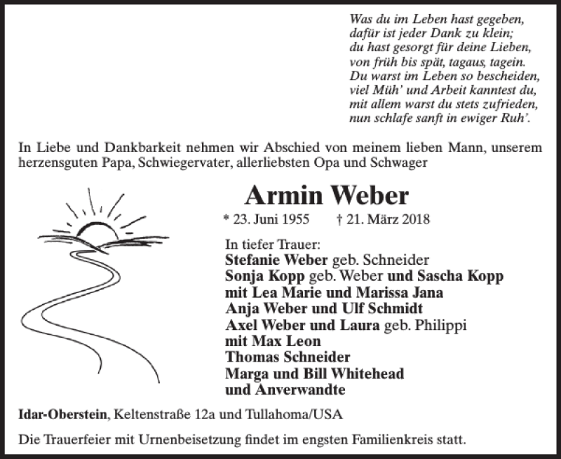 Hier finden Sie alle Traueranzeigen aus der Zeitung, die bisher für Armin Weber erschienen sind. Weitere Traueranzeigen, die in der Zeitung erscheinen, werden hier ebenfalls aufgelistet