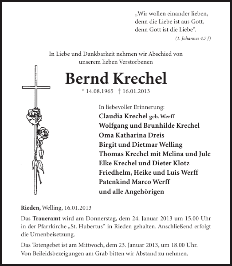 Hier finden Sie alle Traueranzeigen aus der Zeitung, die bisher für Bernd Krechel erschienen sind. Weitere Traueranzeigen, die in der Zeitung erscheinen, werden hier ebenfalls aufgelistet