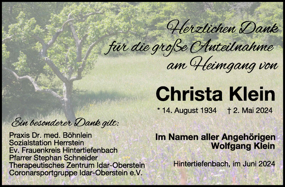 Hier finden Sie alle Traueranzeigen aus der Zeitung, die bisher für Christa Klein erschienen sind. Weitere Traueranzeigen, die in der Zeitung erscheinen, werden hier ebenfalls aufgelistet