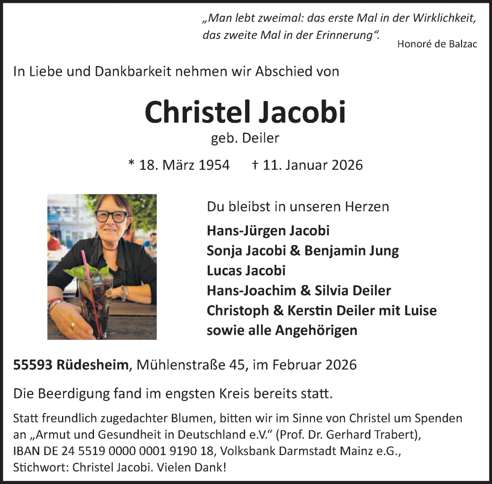Hier finden Sie alle Traueranzeigen aus der Zeitung, die bisher für Christel Jacobi erschienen sind. Weitere Traueranzeigen, die in der Zeitung erscheinen, werden hier ebenfalls aufgelistet