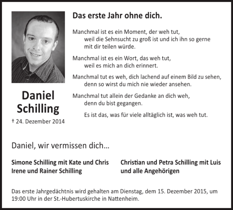 Hier finden Sie alle Traueranzeigen aus der Zeitung, die bisher für Daniel Schilling erschienen sind. Weitere Traueranzeigen, die in der Zeitung erscheinen, werden hier ebenfalls aufgelistet