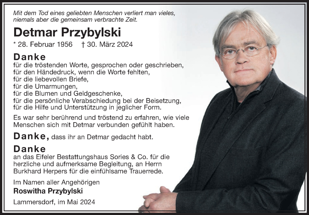 Hier finden Sie alle Traueranzeigen aus der Zeitung, die bisher für Detmar Przybylski erschienen sind. Weitere Traueranzeigen, die in der Zeitung erscheinen, werden hier ebenfalls aufgelistet