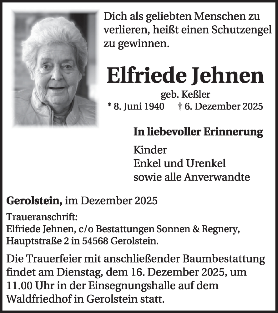 Hier finden Sie alle Traueranzeigen aus der Zeitung, die bisher für Elfriede Jehnen erschienen sind. Weitere Traueranzeigen, die in der Zeitung erscheinen, werden hier ebenfalls aufgelistet