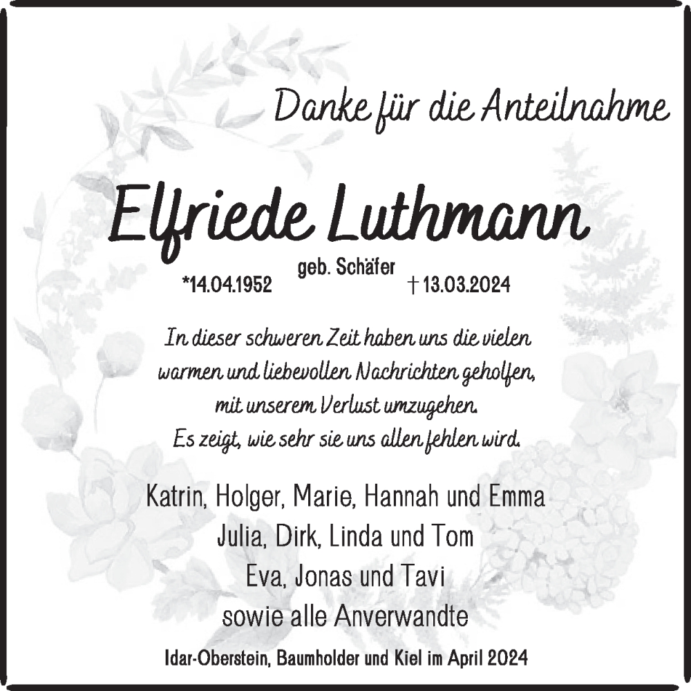 Hier finden Sie alle Traueranzeigen aus der Zeitung, die bisher für Elfriede Luthmann erschienen sind. Weitere Traueranzeigen, die in der Zeitung erscheinen, werden hier ebenfalls aufgelistet