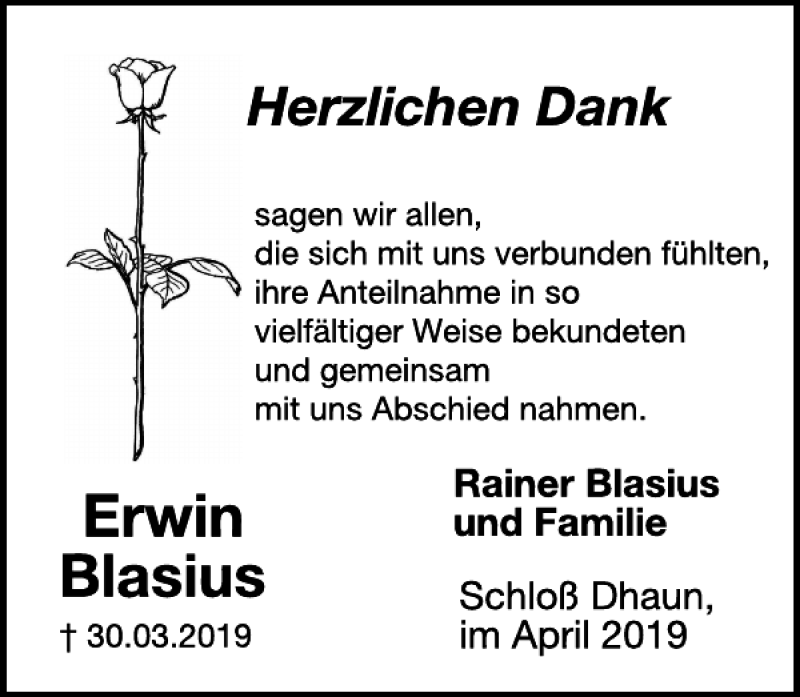 Hier finden Sie alle Traueranzeigen aus der Zeitung, die bisher für Erwin Blasius erschienen sind. Weitere Traueranzeigen, die in der Zeitung erscheinen, werden hier ebenfalls aufgelistet