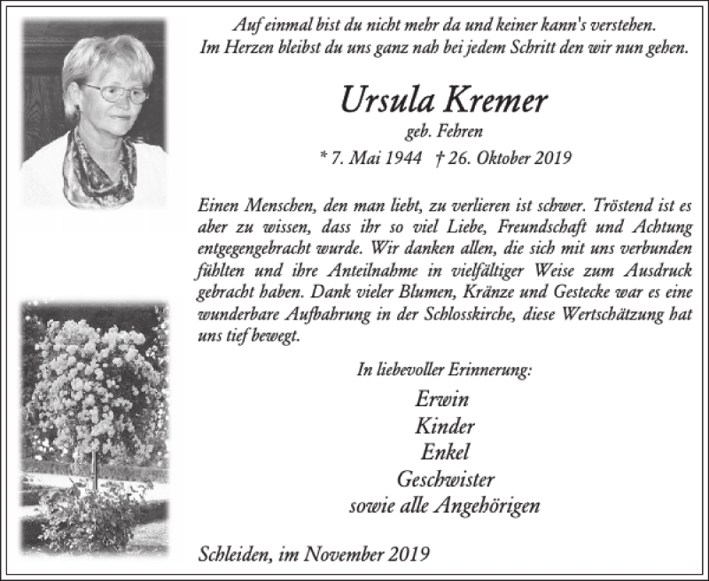 Hier finden Sie alle Traueranzeigen aus der Zeitung, die bisher für Erwin Kinder erschienen sind. Weitere Traueranzeigen, die in der Zeitung erscheinen, werden hier ebenfalls aufgelistet