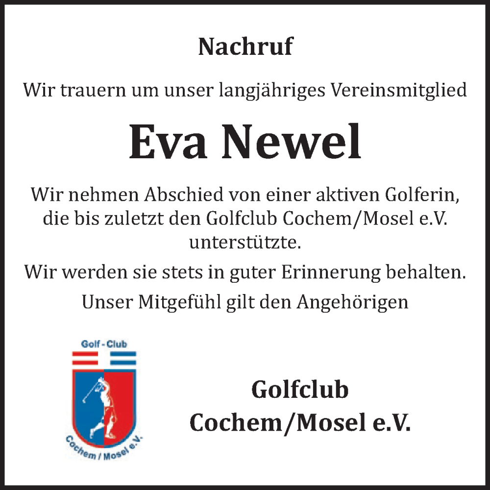Hier finden Sie alle Traueranzeigen aus der Zeitung, die bisher für Eva Newel erschienen sind. Weitere Traueranzeigen, die in der Zeitung erscheinen, werden hier ebenfalls aufgelistet