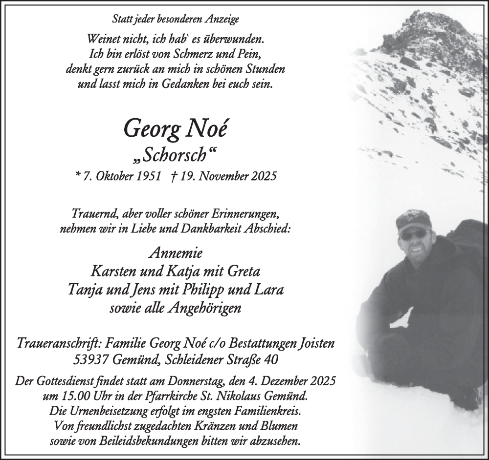 Hier finden Sie alle Traueranzeigen aus der Zeitung, die bisher für Georg Noé erschienen sind. Weitere Traueranzeigen, die in der Zeitung erscheinen, werden hier ebenfalls aufgelistet