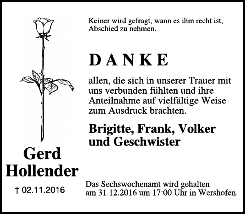 Hier finden Sie alle Traueranzeigen aus der Zeitung, die bisher für Gerd Hollender erschienen sind. Weitere Traueranzeigen, die in der Zeitung erscheinen, werden hier ebenfalls aufgelistet