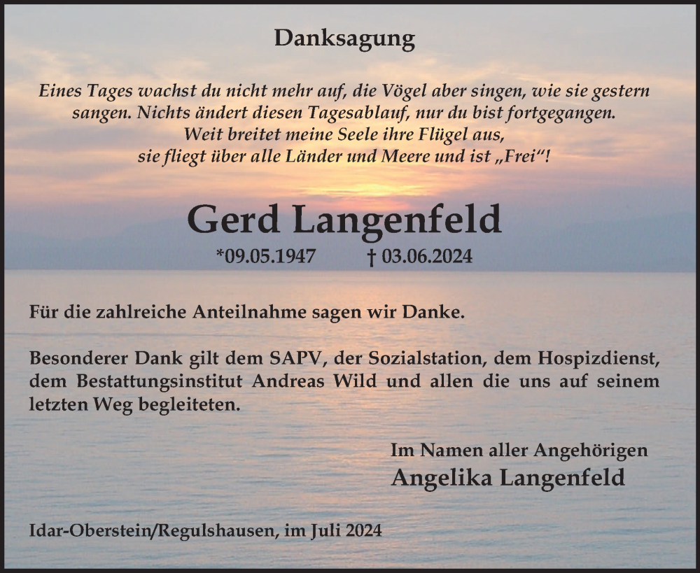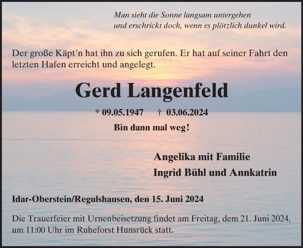 Hier finden Sie alle Traueranzeigen aus der Zeitung, die bisher für Gerd Langenfeld erschienen sind. Weitere Traueranzeigen, die in der Zeitung erscheinen, werden hier ebenfalls aufgelistet