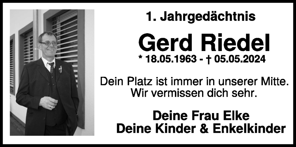Hier finden Sie alle Traueranzeigen aus der Zeitung, die bisher für Gerd Riedel erschienen sind. Weitere Traueranzeigen, die in der Zeitung erscheinen, werden hier ebenfalls aufgelistet