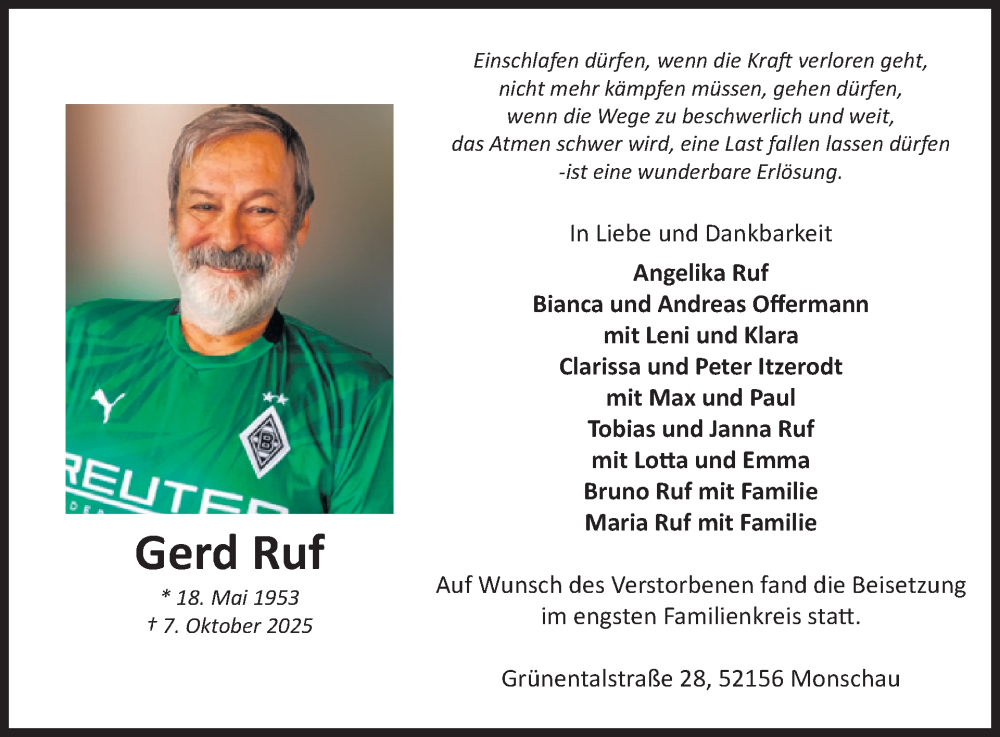 Hier finden Sie alle Traueranzeigen aus der Zeitung, die bisher für Gerd Ruf erschienen sind. Weitere Traueranzeigen, die in der Zeitung erscheinen, werden hier ebenfalls aufgelistet
