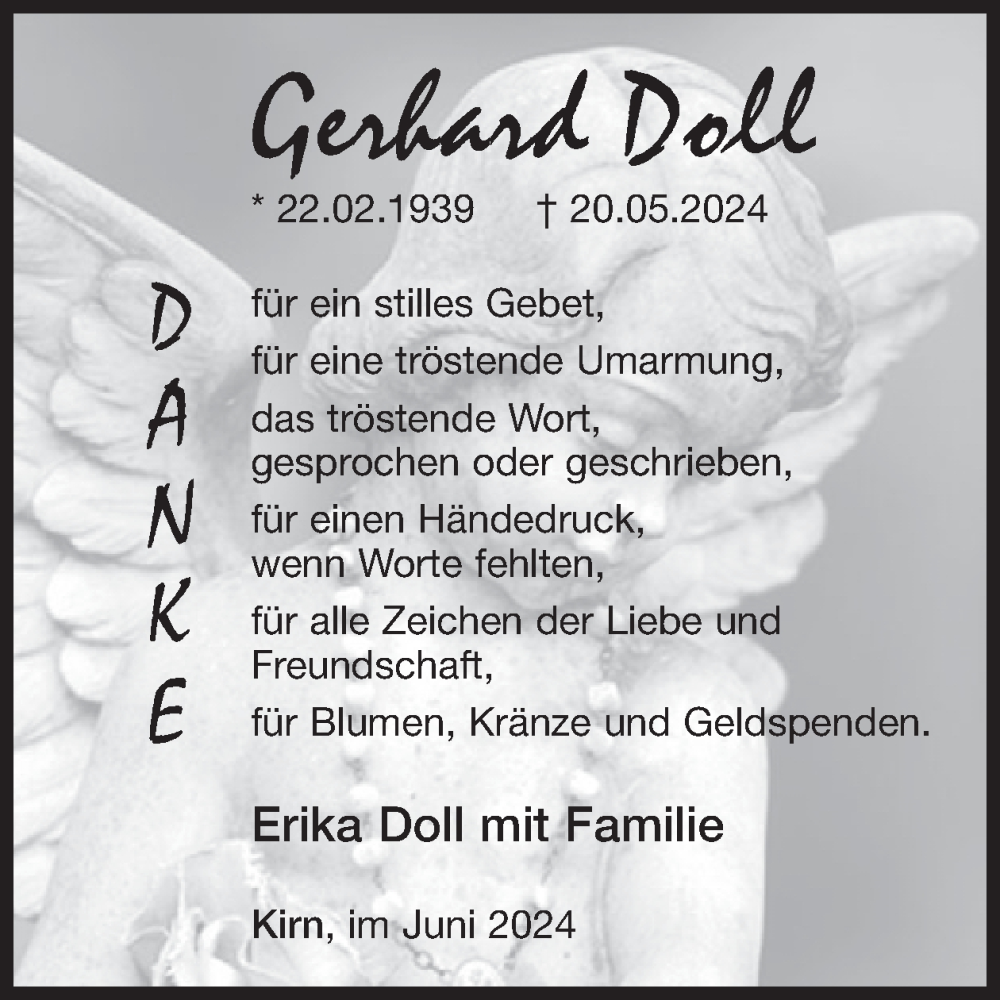 Hier finden Sie alle Traueranzeigen aus der Zeitung, die bisher für Gerhard Doll erschienen sind. Weitere Traueranzeigen, die in der Zeitung erscheinen, werden hier ebenfalls aufgelistet