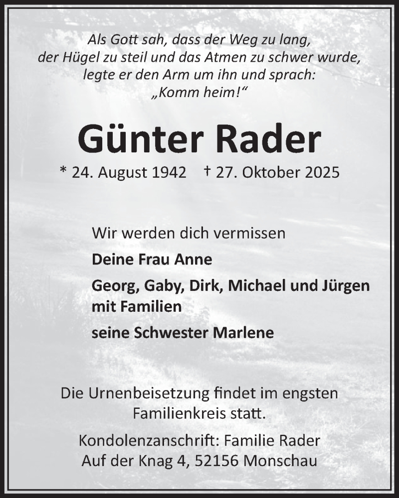 Hier finden Sie alle Traueranzeigen aus der Zeitung, die bisher für Günter Rader erschienen sind. Weitere Traueranzeigen, die in der Zeitung erscheinen, werden hier ebenfalls aufgelistet