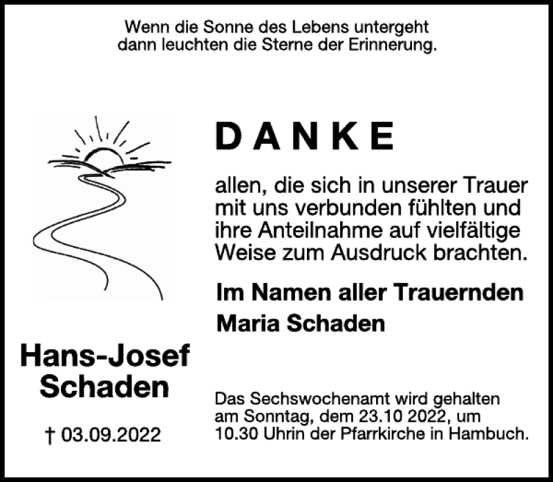 Hier finden Sie alle Traueranzeigen aus der Zeitung, die bisher für Hans-Josef Schaden erschienen sind. Weitere Traueranzeigen, die in der Zeitung erscheinen, werden hier ebenfalls aufgelistet