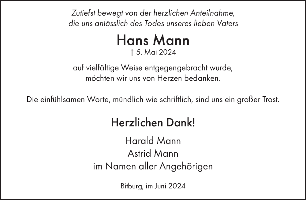 Hier finden Sie alle Traueranzeigen aus der Zeitung, die bisher für Hans Mann erschienen sind. Weitere Traueranzeigen, die in der Zeitung erscheinen, werden hier ebenfalls aufgelistet