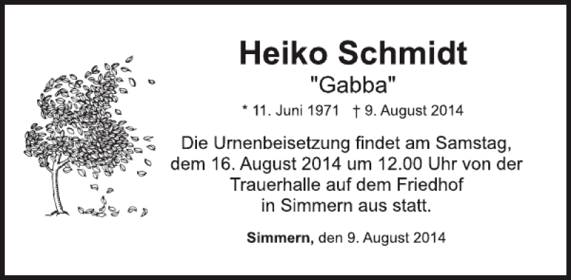 Hier finden Sie alle Traueranzeigen aus der Zeitung, die bisher für Heiko Schmidt erschienen sind. Weitere Traueranzeigen, die in der Zeitung erscheinen, werden hier ebenfalls aufgelistet