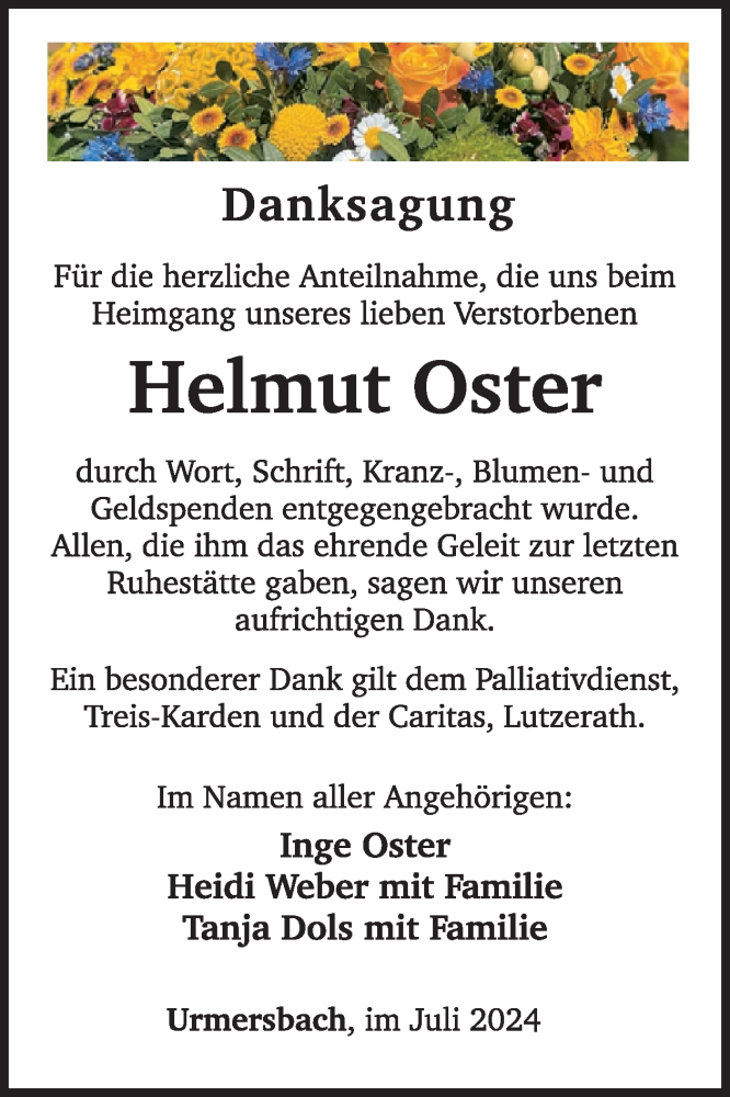 Hier finden Sie alle Traueranzeigen aus der Zeitung, die bisher für Helmut Oster erschienen sind. Weitere Traueranzeigen, die in der Zeitung erscheinen, werden hier ebenfalls aufgelistet