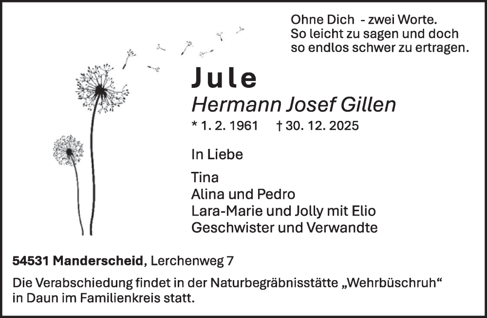 Hier finden Sie alle Traueranzeigen aus der Zeitung, die bisher für Hermann Josef Gillen erschienen sind. Weitere Traueranzeigen, die in der Zeitung erscheinen, werden hier ebenfalls aufgelistet