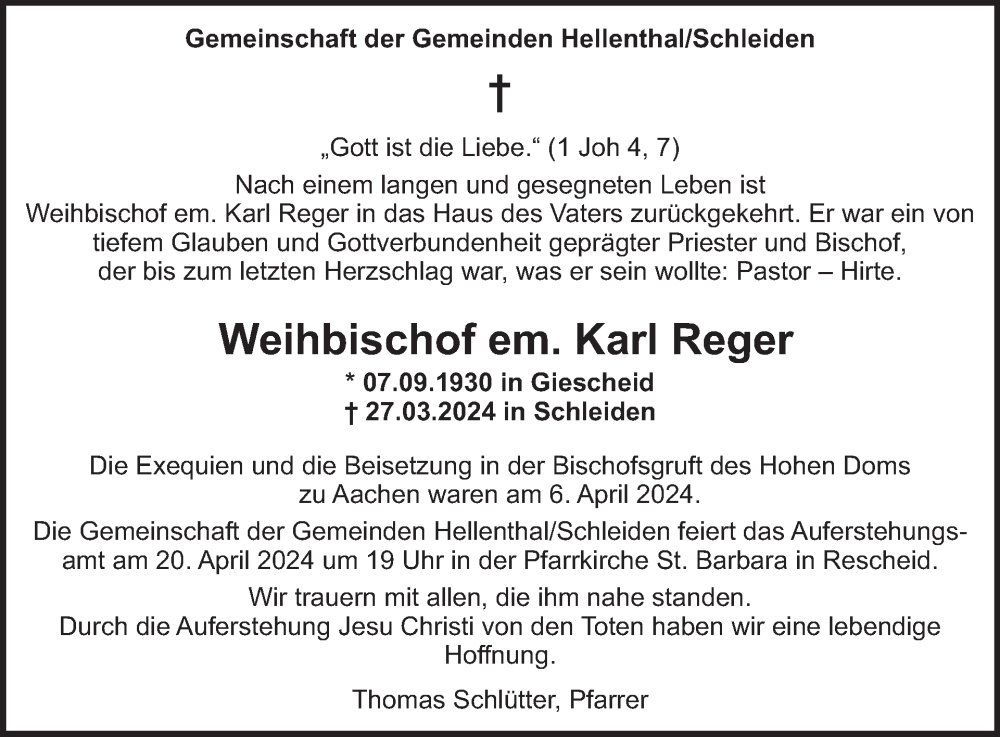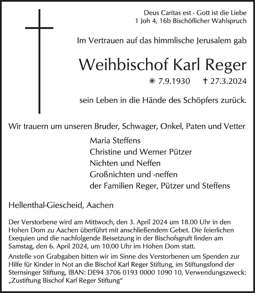 Hier finden Sie alle Traueranzeigen aus der Zeitung, die bisher für Karl Reger erschienen sind. Weitere Traueranzeigen, die in der Zeitung erscheinen, werden hier ebenfalls aufgelistet