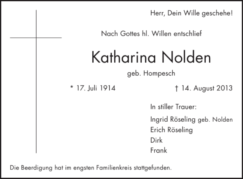 Hier finden Sie alle Traueranzeigen aus der Zeitung, die bisher für Katharina Nolden erschienen sind. Weitere Traueranzeigen, die in der Zeitung erscheinen, werden hier ebenfalls aufgelistet