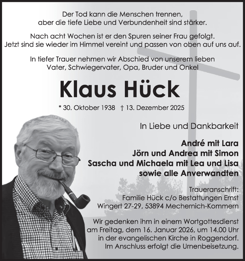 Hier finden Sie alle Traueranzeigen aus der Zeitung, die bisher für Klaus Hück erschienen sind. Weitere Traueranzeigen, die in der Zeitung erscheinen, werden hier ebenfalls aufgelistet