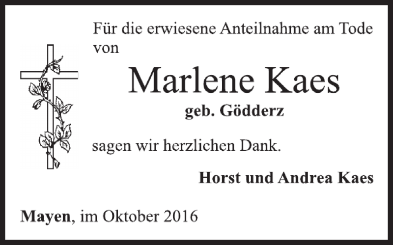 Hier finden Sie alle Traueranzeigen aus der Zeitung, die bisher für Marlene Kaes erschienen sind. Weitere Traueranzeigen, die in der Zeitung erscheinen, werden hier ebenfalls aufgelistet