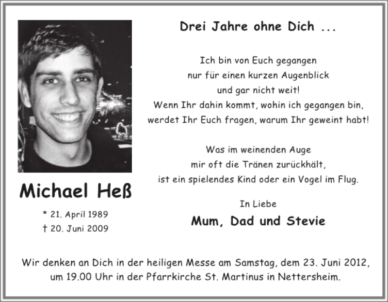 Hier finden Sie alle Traueranzeigen aus der Zeitung, die bisher für Michael Heß erschienen sind. Weitere Traueranzeigen, die in der Zeitung erscheinen, werden hier ebenfalls aufgelistet