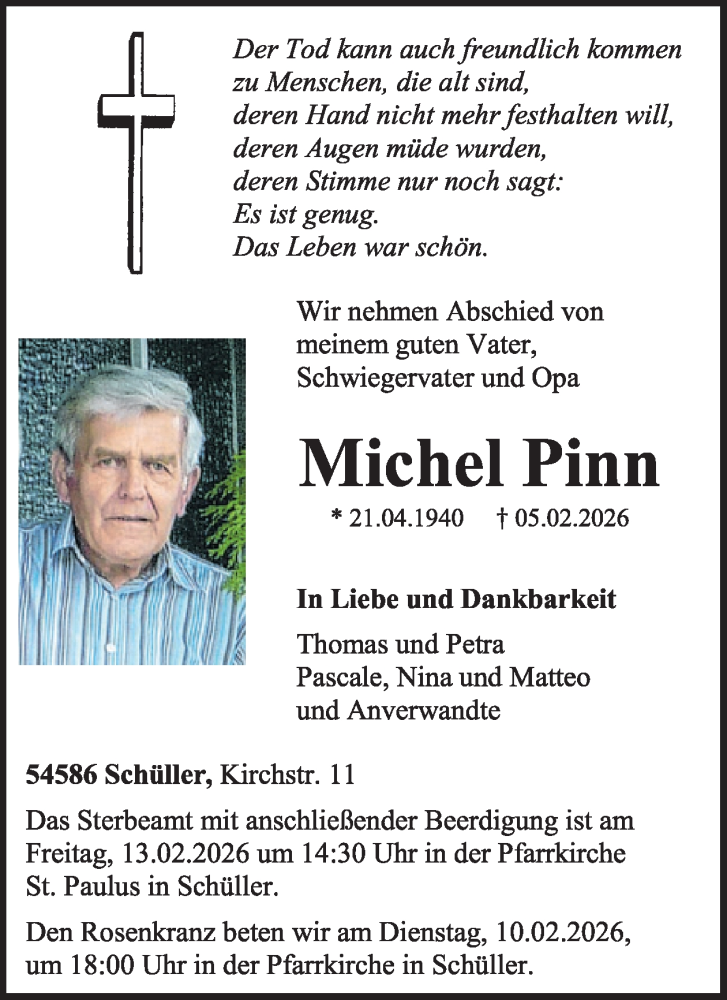 Hier finden Sie alle Traueranzeigen aus der Zeitung, die bisher für Michel Pinn erschienen sind. Weitere Traueranzeigen, die in der Zeitung erscheinen, werden hier ebenfalls aufgelistet