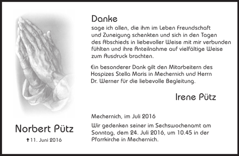 Hier finden Sie alle Traueranzeigen aus der Zeitung, die bisher für Norbert Pütz erschienen sind. Weitere Traueranzeigen, die in der Zeitung erscheinen, werden hier ebenfalls aufgelistet