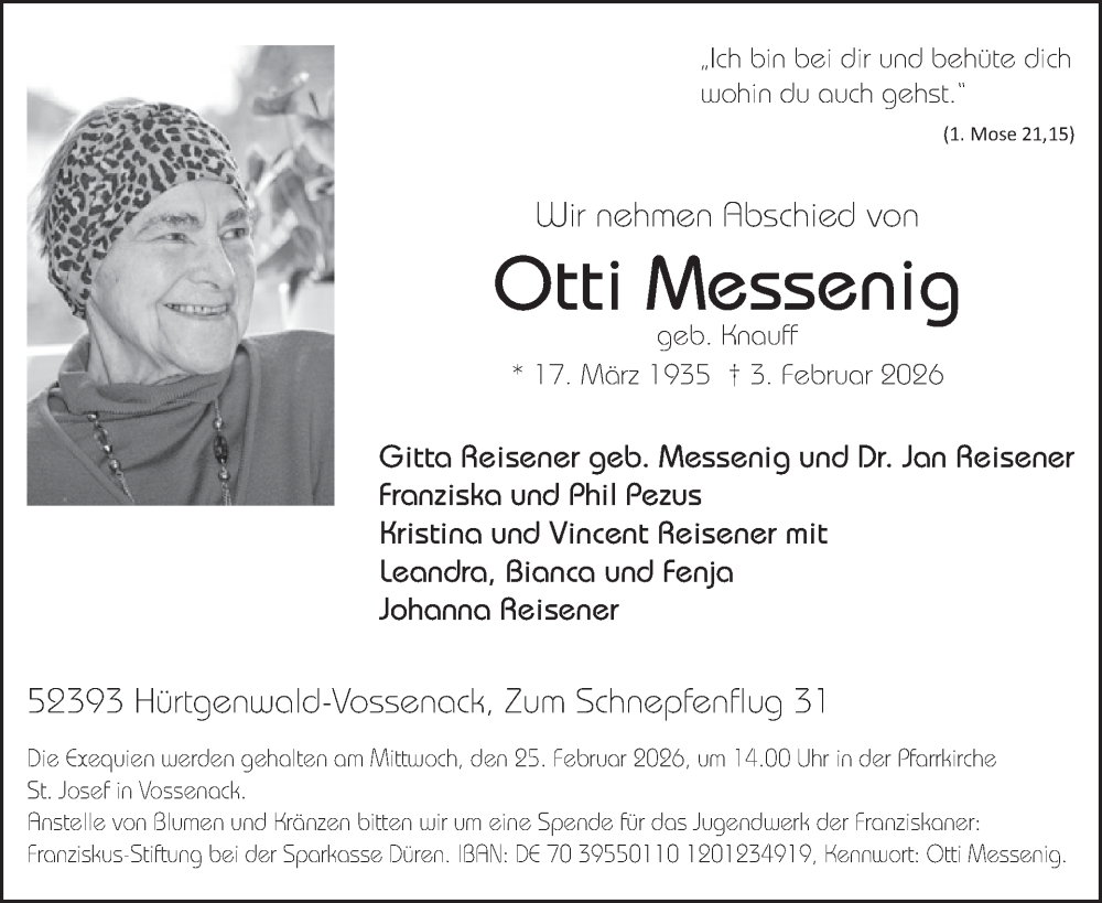 Hier finden Sie alle Traueranzeigen aus der Zeitung, die bisher für Otti Messenig erschienen sind. Weitere Traueranzeigen, die in der Zeitung erscheinen, werden hier ebenfalls aufgelistet