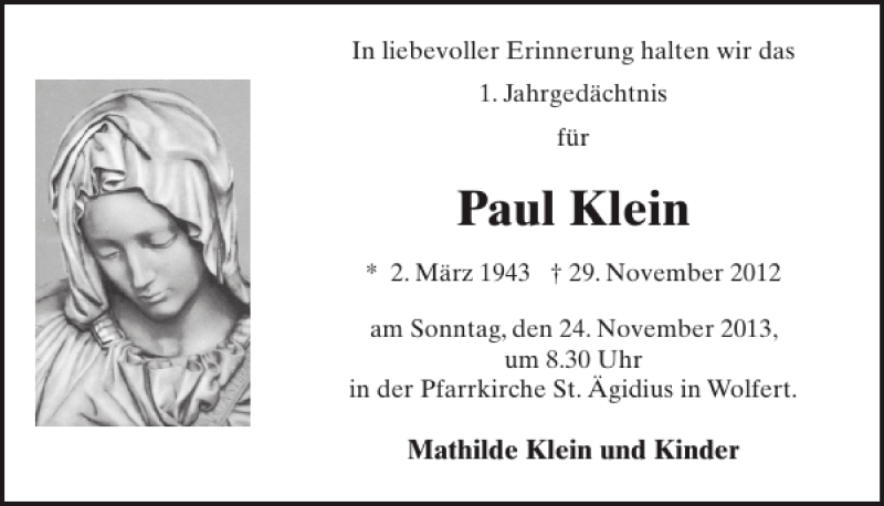 Hier finden Sie alle Traueranzeigen aus der Zeitung, die bisher für Paul Klein erschienen sind. Weitere Traueranzeigen, die in der Zeitung erscheinen, werden hier ebenfalls aufgelistet