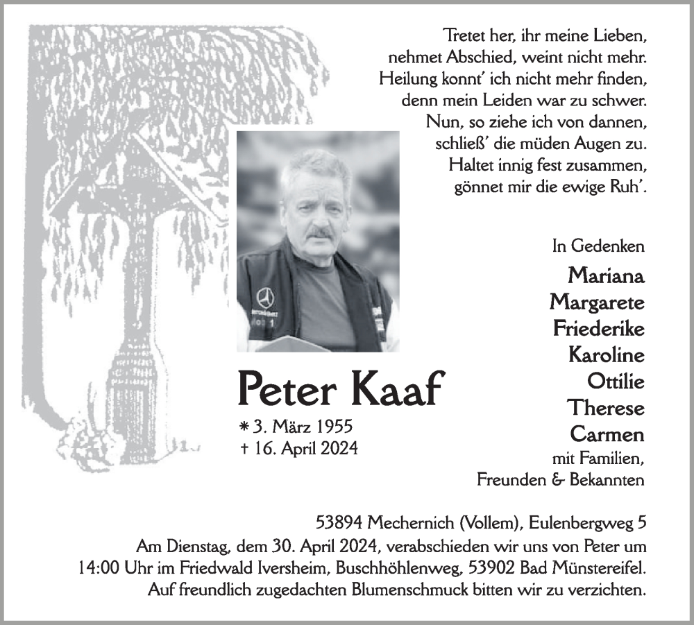 Hier finden Sie alle Traueranzeigen aus der Zeitung, die bisher für Peter Kaaf erschienen sind. Weitere Traueranzeigen, die in der Zeitung erscheinen, werden hier ebenfalls aufgelistet