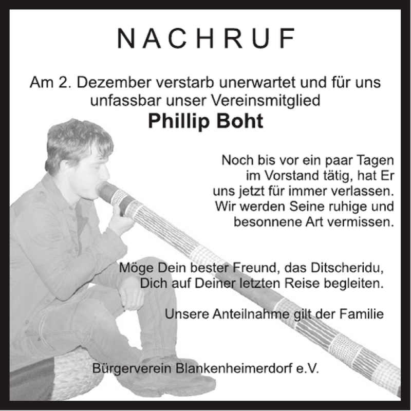 Hier finden Sie alle Traueranzeigen aus der Zeitung, die bisher für Phillip Boht erschienen sind. Weitere Traueranzeigen, die in der Zeitung erscheinen, werden hier ebenfalls aufgelistet