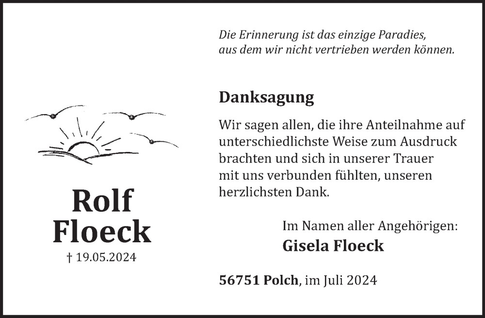 Hier finden Sie alle Traueranzeigen aus der Zeitung, die bisher für Rolf Floeck erschienen sind. Weitere Traueranzeigen, die in der Zeitung erscheinen, werden hier ebenfalls aufgelistet