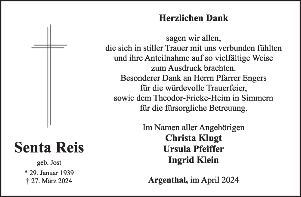 Hier finden Sie alle Traueranzeigen aus der Zeitung, die bisher für Senta Reis erschienen sind. Weitere Traueranzeigen, die in der Zeitung erscheinen, werden hier ebenfalls aufgelistet