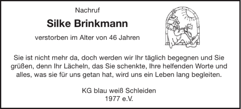 Hier finden Sie alle Traueranzeigen aus der Zeitung, die bisher für Silke Brinkmann erschienen sind. Weitere Traueranzeigen, die in der Zeitung erscheinen, werden hier ebenfalls aufgelistet