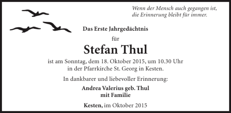 Hier finden Sie alle Traueranzeigen aus der Zeitung, die bisher für Stefan Thul erschienen sind. Weitere Traueranzeigen, die in der Zeitung erscheinen, werden hier ebenfalls aufgelistet