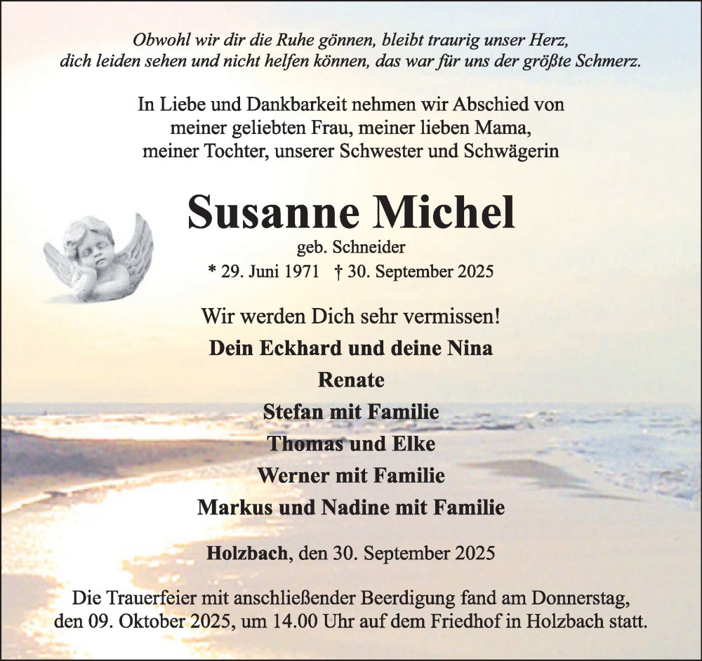 Hier finden Sie alle Traueranzeigen aus der Zeitung, die bisher für Susanne Michel erschienen sind. Weitere Traueranzeigen, die in der Zeitung erscheinen, werden hier ebenfalls aufgelistet