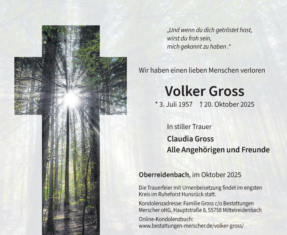 Hier finden Sie alle Traueranzeigen aus der Zeitung, die bisher für Volker Gross erschienen sind. Weitere Traueranzeigen, die in der Zeitung erscheinen, werden hier ebenfalls aufgelistet