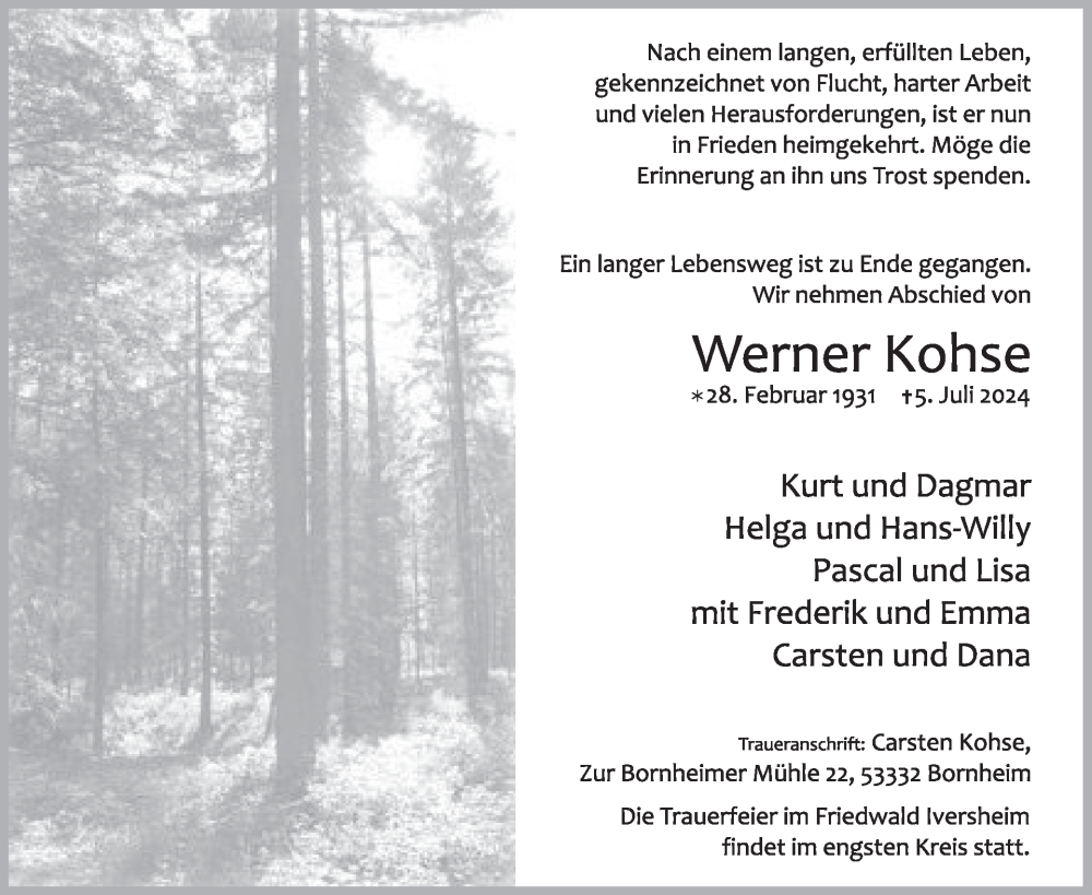 Hier finden Sie alle Traueranzeigen aus der Zeitung, die bisher für Werner Kohse erschienen sind. Weitere Traueranzeigen, die in der Zeitung erscheinen, werden hier ebenfalls aufgelistet