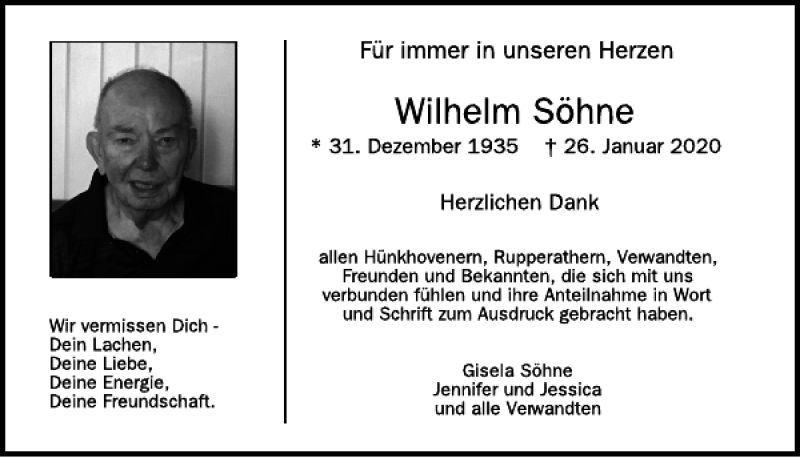 Hier finden Sie alle Traueranzeigen aus der Zeitung, die bisher für Wilhelm Söhne erschienen sind. Weitere Traueranzeigen, die in der Zeitung erscheinen, werden hier ebenfalls aufgelistet