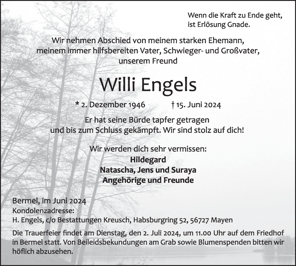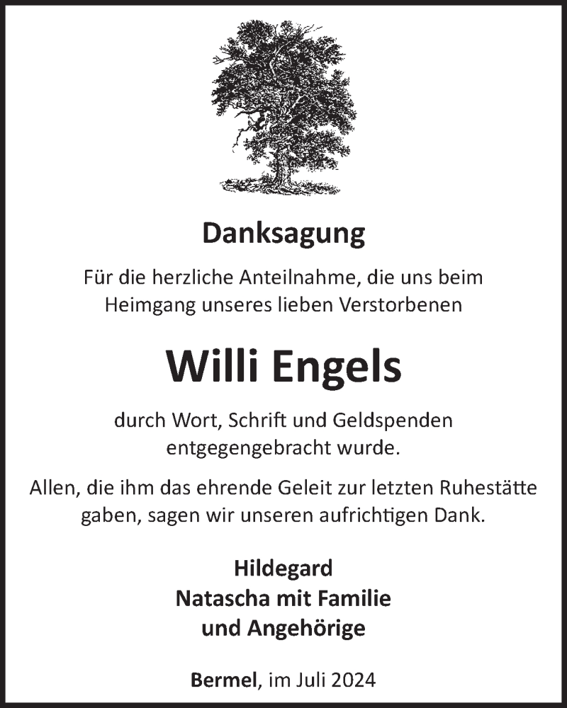 Hier finden Sie alle Traueranzeigen aus der Zeitung, die bisher für Willi Engels erschienen sind. Weitere Traueranzeigen, die in der Zeitung erscheinen, werden hier ebenfalls aufgelistet