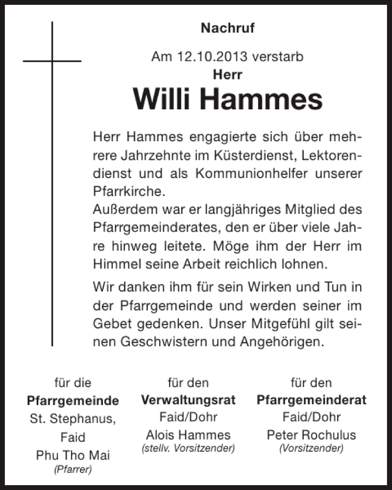 Hier finden Sie alle Traueranzeigen aus der Zeitung, die bisher für Willi Hammes erschienen sind. Weitere Traueranzeigen, die in der Zeitung erscheinen, werden hier ebenfalls aufgelistet