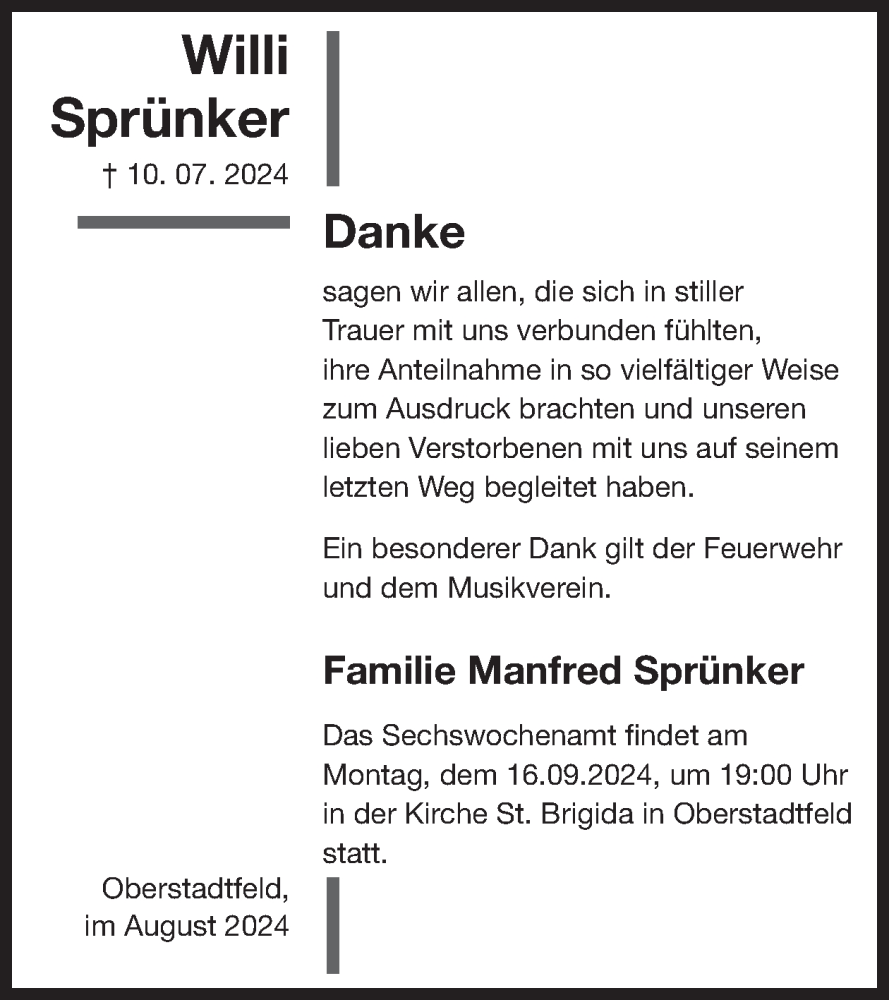 Hier finden Sie alle Traueranzeigen aus der Zeitung, die bisher für Willi Sprünker erschienen sind. Weitere Traueranzeigen, die in der Zeitung erscheinen, werden hier ebenfalls aufgelistet